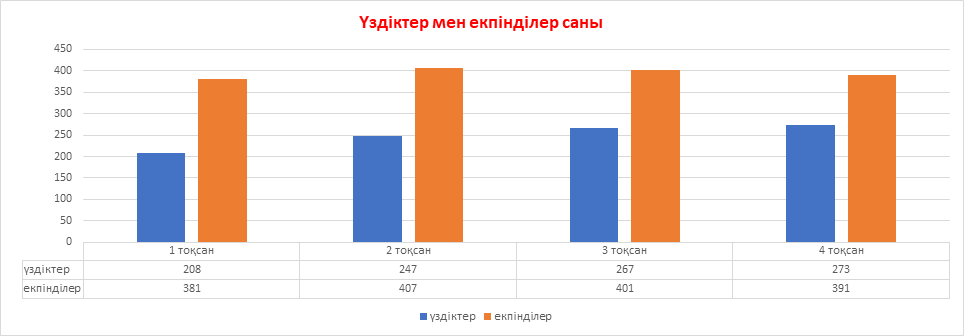 Екпінділер саны | 381 | 407 | 401 | 391 |