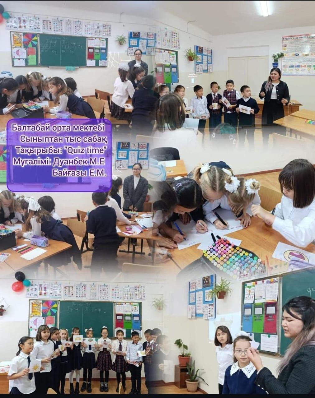 4 сыныптар арасында «Quiz time» тақырыбында, викториналық сыныптан тыс іс-шара өткізілді. Оқушылар іс-шара кезінде екі сынып арасында 3 түрлі кезеңдерден тұрды.