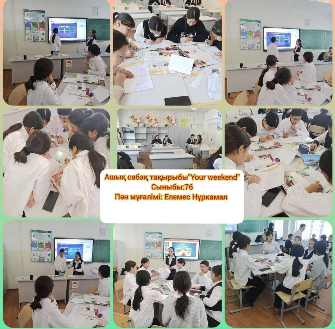 «Алматы облысы білім басқармасының Еңбекшіқазақ ауданы бойынша білім бөлімі»мемлекеттік мекемесінің «Балтабай орта мектебі «КММ15.11.2024ж Ағылшын тілі пәні мұғалімі Елемес Нұркамал «Your weekend»атты ашық сабақ өткізді .Ашық сабақтың мақсаты оқушыларды сөйлеу дағдысын дамытуға,сөздік қорларын молайтуға , ағылшын тіліне деген қызығушылықтарын арттыру.Сабақ қызқты өтті,сабақ барысында