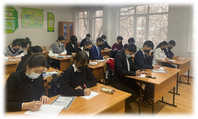 5-9-сыныптарда білім беру процесі ҚР БҒМ 2018 жылғы 31 қазандағы №604 бұйрығымен бекітілген білім берудің барлық деңгейінің мемлекеттік жалпыға міндетті білім беру стандартының 3-қосымшасы (2020 жылғы 28 тамыздағы №372 бұйрығымен өзгерістермен және толықтырулармен) «Негізгі орта білім берудің мемлекеттік жалпыға міндетті стандарты»;«ҚР бастауыш, негізгі орта, жалпы орта білім берудің үлгілік оқу жоспарларын бекіту туралы» Қазақстан Республикасы Білім және ғылым министрінің 2012 жылғы 8 қарашадағы № 500 бұйрығына өзгерістер енгізу туралы 2021 жылғы 20 тамыздағы №415 бұйрығына 6-қосымша «Оқыту қазақ тілінде жүргізілетін сыныптарға арналған негізгі орта білім берудің (жаңартылған мазмұнының) үлгілік оқу жоспары» негізге алынып жасалды. 10-сыныпта білім беру процесі ҚР БҒМ 2018 жылғы 31 қазандағы №604 бұйрығымен бекітілген білім берудің барлық деңгейінің мемлекеттік жалпыға міндетті білім беру стандартының 4-қосымшасы (2020 жылғы 28 тамыздағы №372 бұйрығымен өзгерістермен және толықтырулармен) «Жалпы орта білім берудің мемлекеттік жалпыға міндетті стандарты»; «ҚР бастауыш, негізгі орта,жалпы орта білім берудің үлгілік оқу жоспарларын бекіту туралы» Қазақстан Республикасы Білім және ғылым министрінің 2012 жылғы 8 қарашадағы № 500 бұйрығына өзгерістер енгізу туралы 2021 жылғы 20 тамыздағы №415 бұйрығына 31-қосымша «Оқыту қазақ тілінде жүргізілетін жаратылыстану-математика бағыты» бойынша және 30-қосымшасы «Оқыту қазақ тілінде жүргізілетін қоғамдық-гуманитарлық бағыты бойынша жалпы орта білім берудің (жаңартылған мазмұнының) үлгілік оқу жоспары» басшылыққа алынды. 11-сыныпта білім беру поцесі ҚР БҒМ 2018 жылғы 31 қазандағы №604 бұйрығымен бекітілген (2020 жылғы 5 мамырдағы №182 өзгерістер мен толықтырулар енгізілген) білім берудің барлық деңгейінің мемлекеттік жалпыға міндетті білім беру стандартының 4-қосымшасы «Жалпы орта білім берудің мемлекеттік жалпыға міндетті стандарты»;«ҚР бастауыш, негізгі орта, жалпы орта білім берудің үлгілік оқу жоспарларын бекіту туралы» Қазақстан Республикасы Білім және ғылым министрінің 2012 жылғы 8 қарашадағы № 500 бұйрығына өзгерістер енгізу туралы 2019 жылғы 15 мамырдағы №205 бұйрығына 1-қосымша «Оқыту қазақ тілінде жүргізілетін қоғамдық-гуманитарлық бағыты» бойынша және 2-қосымша «Оқыту қазақ тілінде жүргізілетін жаратылыстану-математика бағыты» жалпы орта білім берудің (жаңартылған мазмұнның) үлгілік оқу жоспары қолданылды. (Көшірмелері берілді)