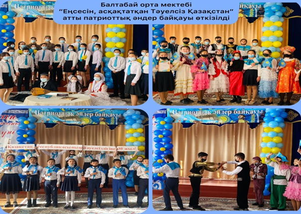 Қазақстан Республикасының 30 жылдығына орай «Мәнгіліік ел жастар» қорының ұйымдастыруымен «Тәуелсіздік -тәңір сыйы» байқауында 1- орынға ие болды :Нұрланұлы Қайсар,Салауатұлы Баяшат,Капи Жандос.
