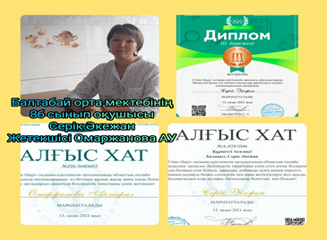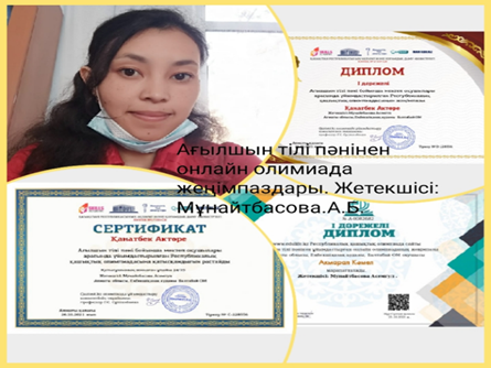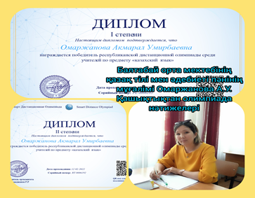 •«Ustaz tilegi» Облыстық қашықтық олимпиадасында оқушы Махаббат Аяла 2 дәрежелі диплом.
