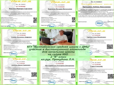 9. Сертификат:"Galamat" онлайын мектебінің "ӘДЕМІ ЖАЗУ МАМАНЫ" курсынан өткені үшін берілді.Алматы облысы Еңбекшіқазақ ауданы Балтабай орта мектебі2 «Б» сынып білім алушыларының 2021-2022 оқу жылындағы жетістіктеріСынып жетекшісі: Г. ҚұрмашРеспубликалық "Әль-Фараби" зияткерлік олимпиадасына 14 білім алушы қатысып жүлделі орындарға ие болды. Атап айтар болсам жүлделі І орынға Молдажан Аруна, Дәулетқызы Назерке, Қадылұлы Сұлтан ие болды. Жүлделі ІІ орынға Акрамкан Рамазан, Ербосын Аяла, Әділбек Ерсін, Жұмайқызы Жайнар, Алибек Ағайша ие болды. Жүлделі ІІІ орынға Нүсіретұлы Жанарыс, Қыдырқан Мағжан, Белқожа Санжар, Айдын Үйсін, Қуаныш Нұрислам, Таласұлы Мұстафа ие болды.