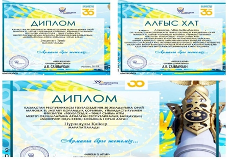 Сондай –ақ Президент Қасым-Жомарт Кемелұлы Тоқаевтың «Тәуелсіздік бәрінен қымбат» атты бағдарламалық мақаласын оқушылар арасында кеңінен насихаттау мақсатында өткен «ҚР 100Үздік ДарындыОқушы» республикалық байқауда білім алушылары Сандыбек Ақжол және Байдаулет Әлихан дәрежелік орынға ие болғаны үшін «Bilim-orkenieti»